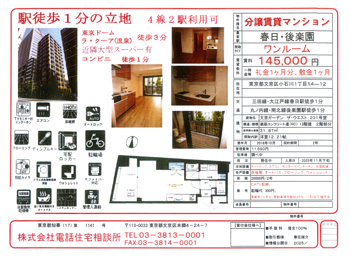 利用沿線:三田線・大江戸線[春日]徒歩1分